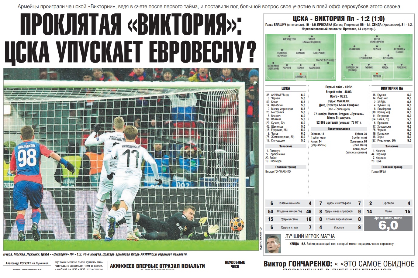 akinfeev otrazil penalti no cska snova proigral v lige chempionov rosbalt